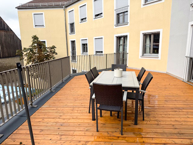 Das Zentrum der Wohngemeinschaft bildet eine großzügige und lichtdurchflutete Gemeinschaftsküche mit angrenzendem Essbereich im zweiten Obergeschoss. Auf über 86 m² kann die Gemeinschaft hier zusammen kochen und speisen. Zudem finden dort verschiedene Betreuungsangebote wie Basteln, Gedächtnistraining etc. statt.